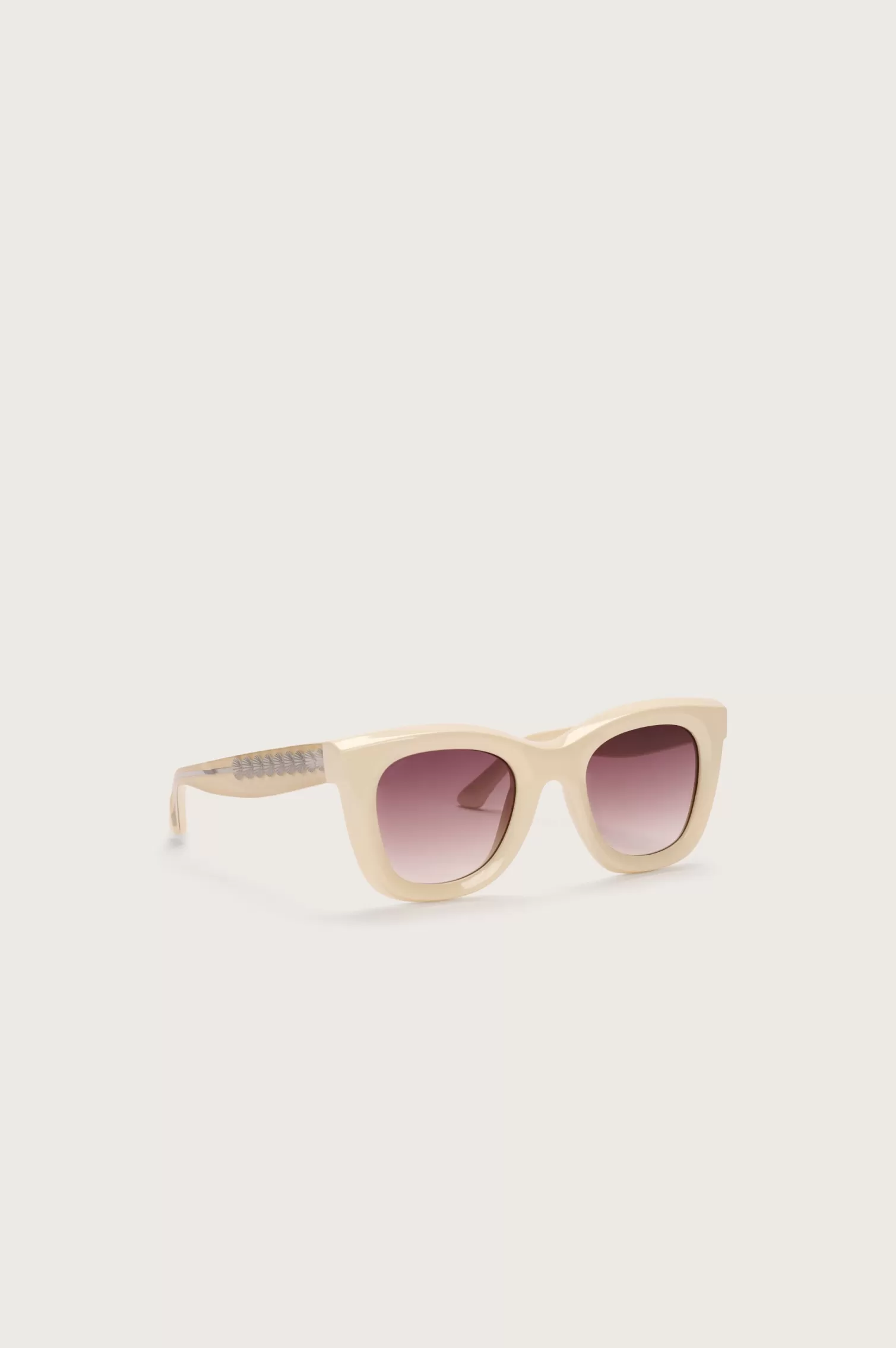 Crafted and colored with delicate precision in Italy, the Juli Sunglasses in Off-White feature a unique die-cut seashell identifier in the core of the wire.